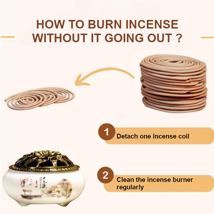 Each spiral burns for approximately 45 to 60 minutes. The fragrance lingers for 2 to 3 hours. Diameter approximately 5 cm (1.97"). This format is especially suited to small spaces, particularly those under 20 m². For stable combustion, carefully separate one spiral at a time and use a clean incense holder, removing residue between uses.